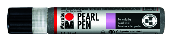 Marabu PEARL PEN je perleťová farba na vodnej báze, ktorázasychá do lesklého/trblietavého povrchu.Formuje sa do vyvýšenýchpolperličiek, ktorých veľkosť je možné ľahko meniť pomocoumnožstvo nanesenej farby.Farba PEARL PEN je vegánska a vhodná pre mnoho svetlých atmavých povrchov, ako sú textílie (až 20% syntetickýchvlákien, doba sušenia 72 h, jemné pranie 30 ° C) alebo papier, drevo,kameň, sklo a porcelán.